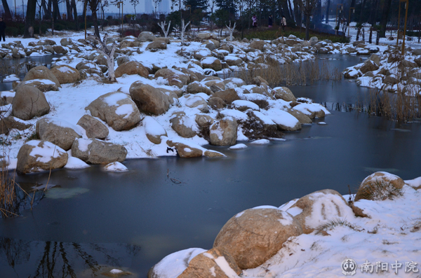 春节期间,我市迎来了入冬以来的第一场降雪。雪姑娘的姗姗来迟,不仅让自己多了一份娇羞和神秘,更让人们体会到了一种久旱逢甘霖的惊喜和畅快。踏雪而行,只见雪花纷纷扬扬的从天上飘落下来,天地之间白茫茫的一片,四周像拉起了白色的帐篷,大地立刻变得银装素裹,南阳人民公园和白河湿地公园也比平日里多了一份素雅和静谧。