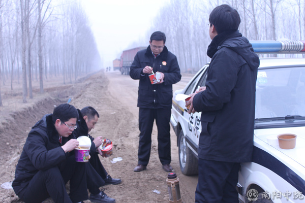 巡回审判结束已是中午1时30分,为了不影响下午的工作,法官们在路边简单地吃了顿午饭。