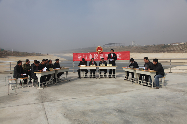 背倚渠首水库,一场涉及9位农民工讨薪的案件正在公开审理。近日,淅川县九重法庭在肖楼村分水口开展巡回审判。