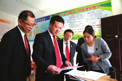 “告诉院长一个好消息,你们上次送来的山羊,已经生下羊崽儿了!”4月21日上午,在南阳市淅川县寺湾镇三泉沟村,村民李某见到前来慰问的淅川县法院院长王建军,兴高采烈地说。在当地养鸡场项目工地上,王建军要求驻村第一书记邓峰积极协助养鸡场建设,早日落实扶贫资金项目,让养鸡场早日开张,早日造福村民。图为王建军正在查看相关扶贫资料。 通讯员张长海陈琛摄影报道