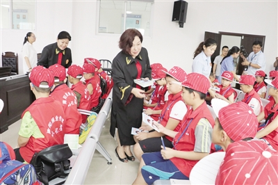南阳报业传媒小记者中心组织50余名小记者走进卧龙区法院,参观了诉讼服务中心、旁听案件审理,并完成了一场模拟庭审 本报记者 吕文杰 摄