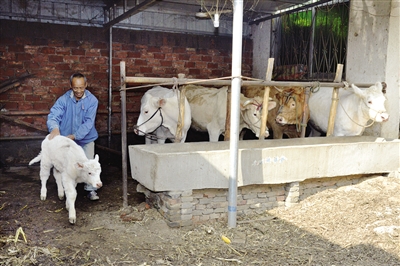 拉着牛犊石志刚喜笑颜开 本报记者 王勇 摄
