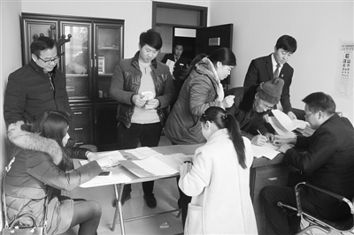 社旗县法院为97名农民工讨薪100余万元,图为农民工正在领款 本报记者 张萌萌 通讯员 王新兵 摄