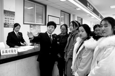 12月4日上午,南阳市卧龙区法院举办公众开放日活动,来自南阳师院法学院40余名师生参观了该院的诉讼服务大厅、12368诉讼服务平台、远程视频接待室、科技法庭,详细了解了法院信息化建设运行情况。