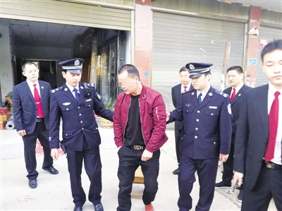“别拽我,让人看见太丢人!”被执行人对干警说。干警不容分说,硬押着“老赖”在众目睽睽之下上了警车。