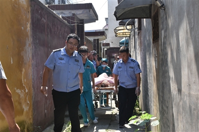 开始腾房,干警看到一位老人全身浮肿溃烂,且已陷入昏迷状态,便马上联系120指挥中心派救护车赶赴现场抢救。经初步诊断,老人患有严重高血压、糖尿病,加上天气炎热、疏于照料,老人身下褥疮已严重感染,同时伴随高血压、糖尿病并发症。情况十分危急,老人被送往医院重症监护室抢救。