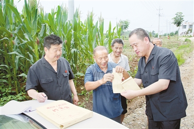 淅川县法院执行干警到盛湾镇单岗村、姚营村为8名申请执行人送去劳务款