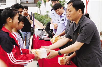 庭审结束后,法官们向旁听师生们分发了普法教育读本,作为六一儿童节的特殊礼物。