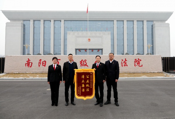 临近新年之际,中原银行南阳分行将一面锦旗送到河南省南阳市中级人民法院执行局王全局长、郭金雨副局长手中,表达了中原银行南阳分行对南阳中院公正高效执行中原银行金融债权案件的感谢。