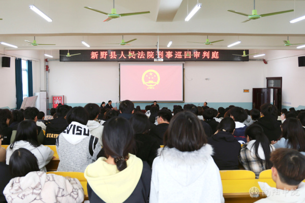 “现在开庭!”10月28日,随着清脆的法槌声响起,一场特殊的庭审在新野县春晖中等职业学校阶梯教室拉开帷幕,百余名师生端坐观摩席,目光聚焦在国徽下庄严的审判席。为增强青少年法治意识,从源头预防和减少未成年人违法犯罪,河南省新野县人民法院刑事审判庭将真实案件审理搬进校园,为师生们上了一堂生动的法治公开课。