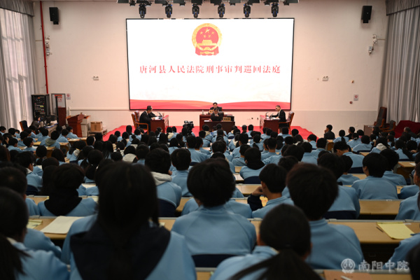 为进一步增强青少年法治意识,筑牢校园反诈防骗安全防线,11月14日上午,唐河县人民法院公开开庭审理一起帮助信息网络犯罪活动罪案件。活动通过“庭审进校园+普法讲座”的方式,为唐河县中等职业学校百余名同学带来了一堂深刻而又生动的法治教育课。