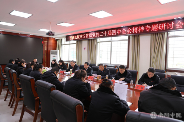 会议传达了习近平总书记在党的二十届四中全会上的重要讲话精神和全会精神,与会人员围绕学习内容与工作实际进行了交流研讨,并结合西峡法院工作实际,研究制定学习贯彻落实措施。