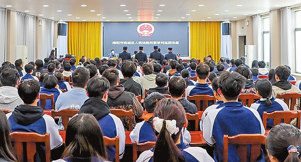 11月14日上午,河南省南阳市宛城区人民法院在南阳开放大学巡回审理一起刑事案件,为百余名师生上了一堂生动又深刻的法治公开课。