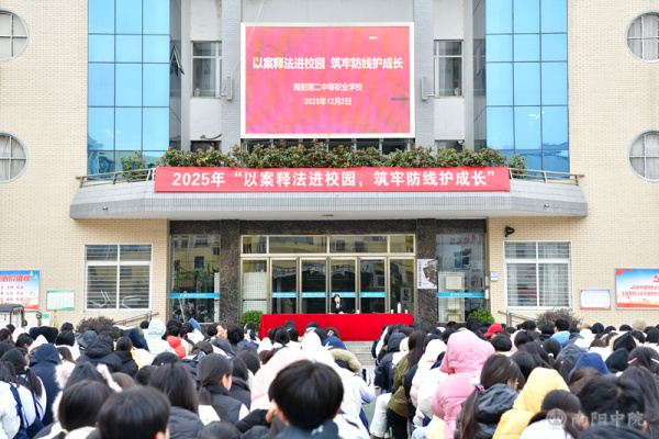 12月2日,南阳第二中等职业学校法治副校长、河南省南阳市中级人民法院少年综合审判庭副庭长张雪走进该校校园,面对1300余名师生,她用真实案例解读法律边界,深入剖析青少年易发的违法犯罪行为,为同学们送上一堂生动的法治实践课。