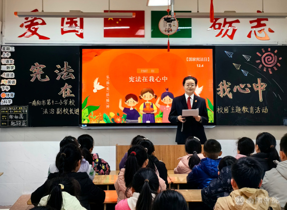 12月2日,在第十二个“国家宪法日”来临之际,河南省南阳市第十二小学校(本部)法治副校长、南阳市中级人民法院环境资源审判庭法官吴霞走进十二小,开展以“宪法在我心中,做文明好少年”为主题的宪法宣讲活动,为同学们带来了一堂生动而深刻的法治启蒙课。