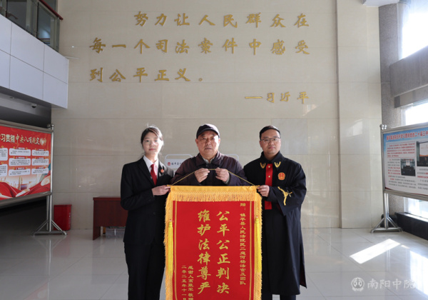 “法官同志,真是太谢谢你们了!这笔钱对我来说太重要了!”近日,年逾七旬的高某专程来到镇平县人民法院,将一面绣有“公平公正判决 维护法律尊严”的锦旗郑重地送到民二庭承办法官何杨手中,言语间满是对法院公正审判的感谢。