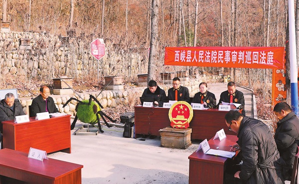 12月18日上午,河南省西峡县人民法院丁河人民法庭法官来到二郎坪镇中坪村,在中华蜂养殖培训基地对一起涉中华蜂纠纷案开展巡回审判。