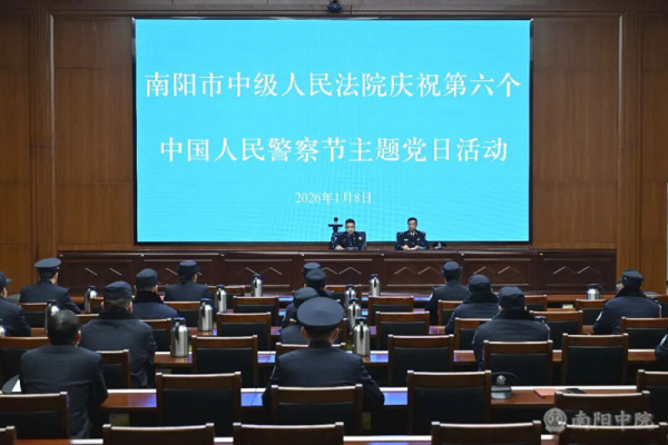 为热烈庆祝第六个“中国人民警察节”,进一步筑牢司法警察队伍忠诚警魂,激励全体警员以更加昂扬的斗志、更加严明的纪律、更加过硬的作风投身人民法院安全保障和司法事业,1月8日,河南省南阳市中级人民法院隆重举行庆祝“中国人民警察节”主题党日活动。