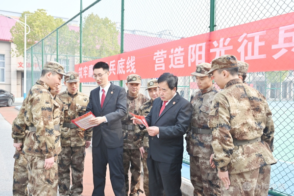 阳春三月,戎装待发。为从源头上筑牢预定新兵法治根基,助力强军兴军事业,3月11日,社旗县人民法院机关党委副书记刘枫林、民事审判一庭负责人詹兴合一行走进县人武部,开展“送法进军营”活动,通过一堂干货满满的“法治第一课”,为即将踏入军营的“准新兵”系好军旅生涯的“第一粒法治扣子”。