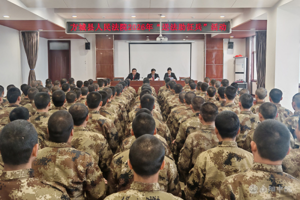 为进一步筑牢预定新兵的法纪思想根基,全面提升其法治素养,3月13日,方城县人民法院审委会专职委员曹天祥、民事审判一庭庭长张红卫等一行到方城县民兵训练基地开展“送法助征兵”活动,为预定新兵送上一堂干货满满的役前“法治第一课”,切实维护军人军属合法权益,为青年筑梦军旅保驾护航。
